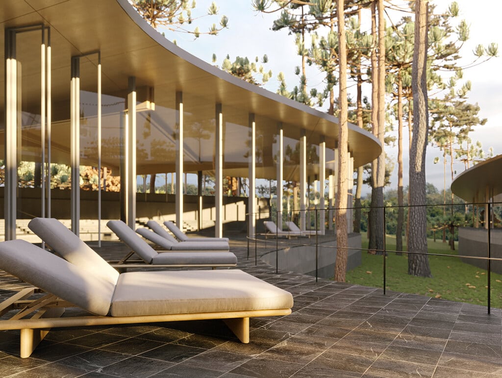 O projeto das Termas da Serra iniciou-se em 2018 e abrange um complexo turístico em região montanhosa no Sul do Brasil, caracterizada por relevo acentuado e presença de águas termais em no terreno do projeto. Visando suprir a crescente demanda pela hotelaria de alto padrão, o programa de necessidades do empreendimento conta com hotel, centro de eventos, parque aquático e spa.